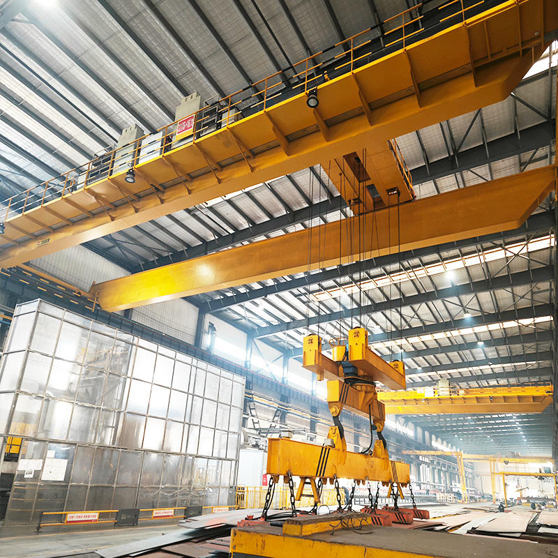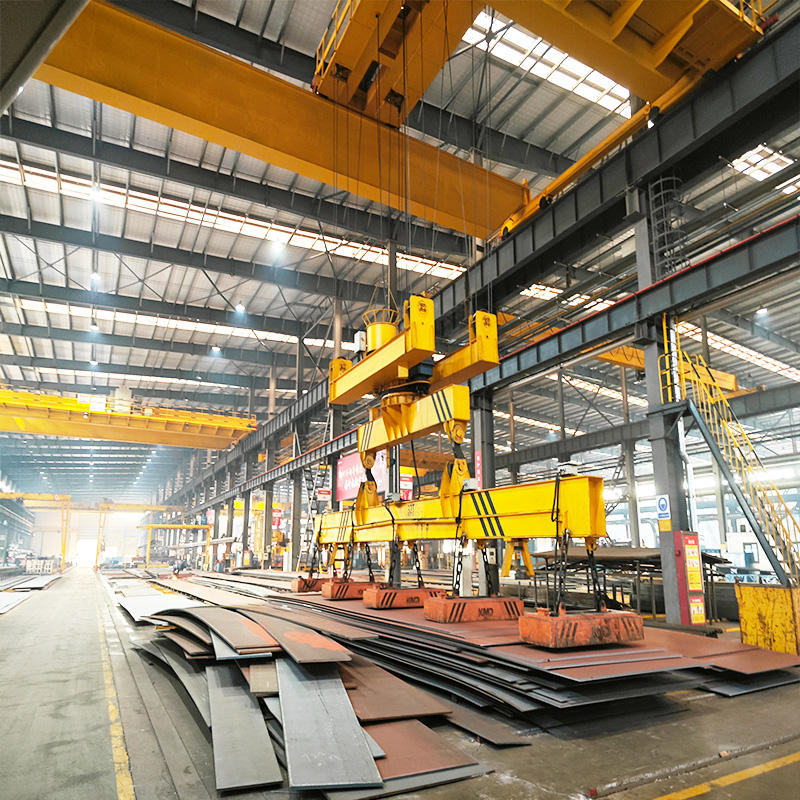 通過(guò)電磁吸盤(pán)完成物料搬運(yùn)工作,該起重機(jī)適用于鋼廠倉(cāng)庫(kù),用作搬運(yùn)鋼板、碎料等。? ? ? ? ?